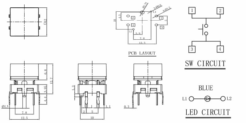 • 帶燈輕觸開關(guān)TS15-5-TW-R-S